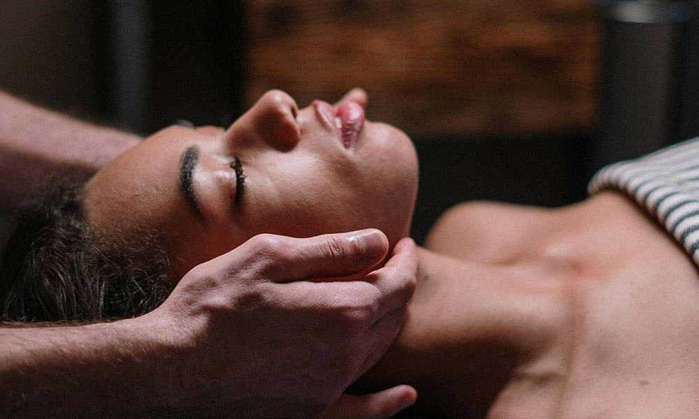 La séance se poursuit par la face antérieure, en évitant soigneusement certaines zones sensibles comme la région thyroïdienne. Le soin peut s’achever par un massage délicat du cuir chevelu, consolidant les bienfaits obtenus.